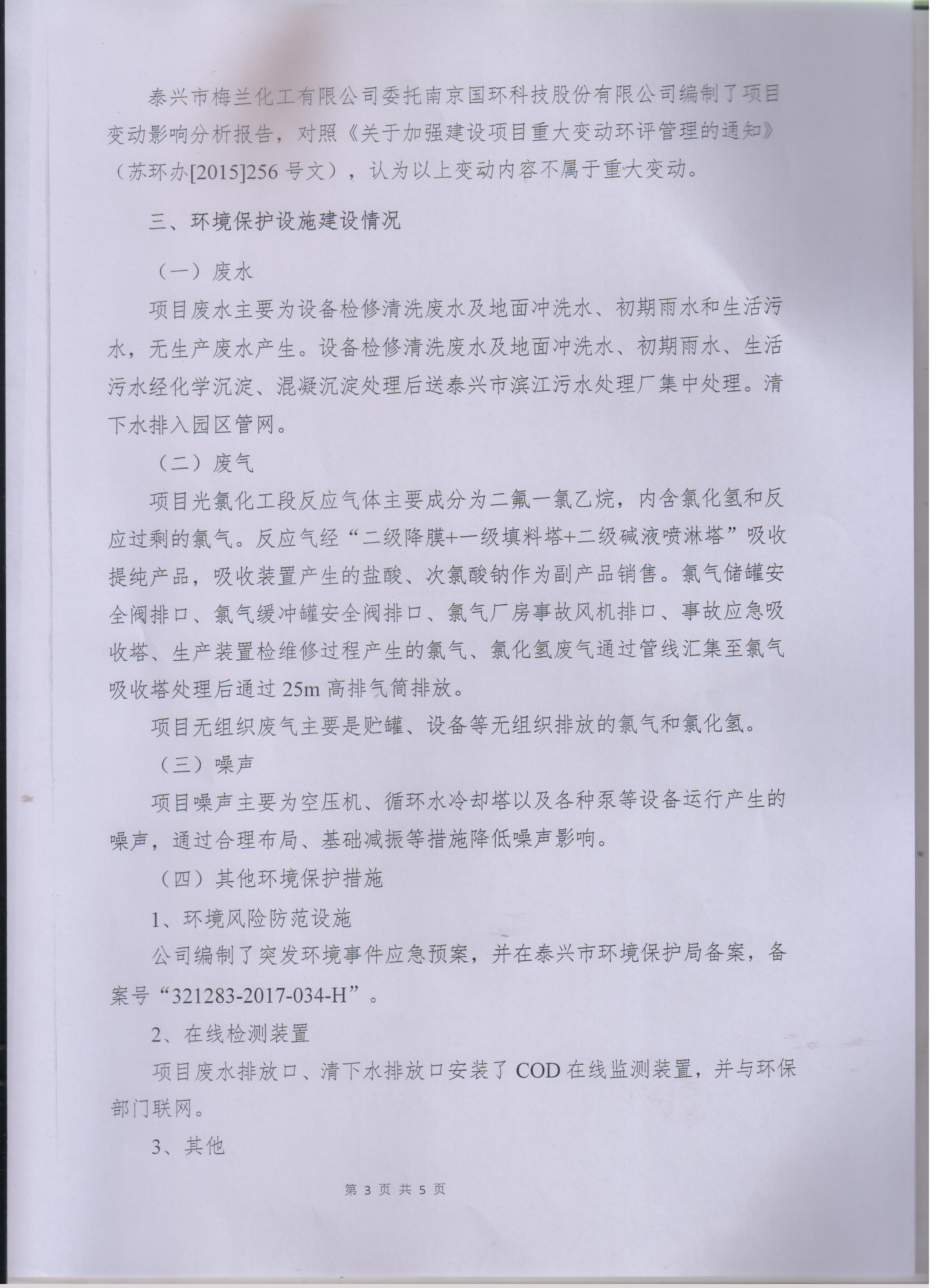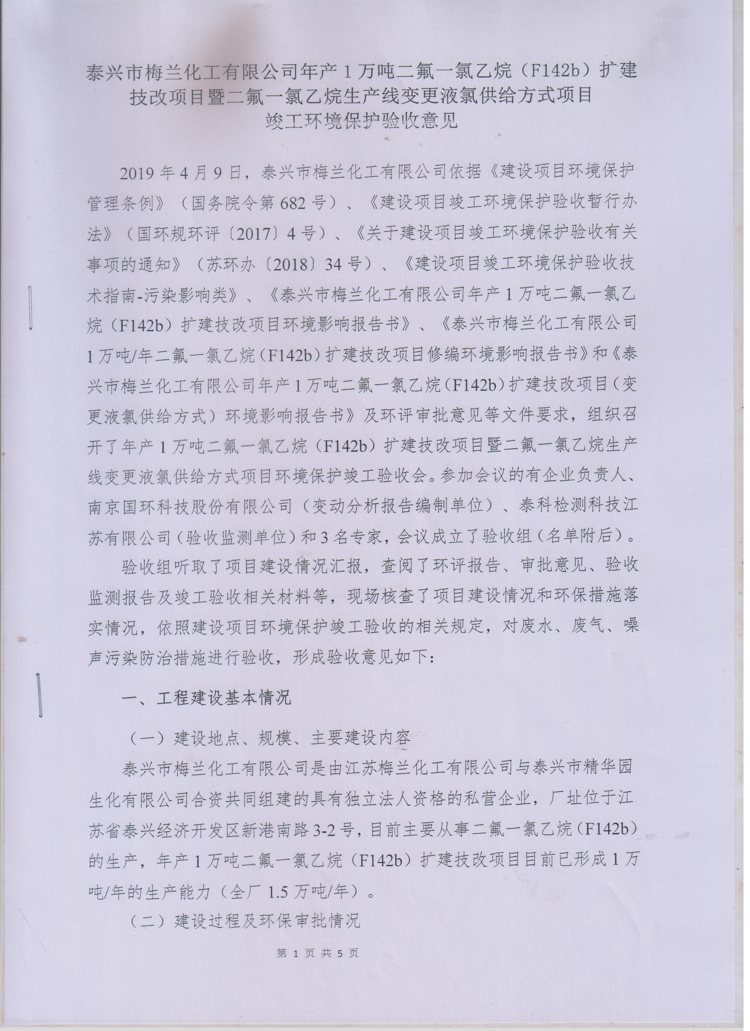 泰興市梅蘭化工有限公司 >> 新聞中心 >> 1萬(wàn)噸二氟一氯乙烷(F142b)擴建技改項目竣工環(huán)境保護驗收意見(jiàn)